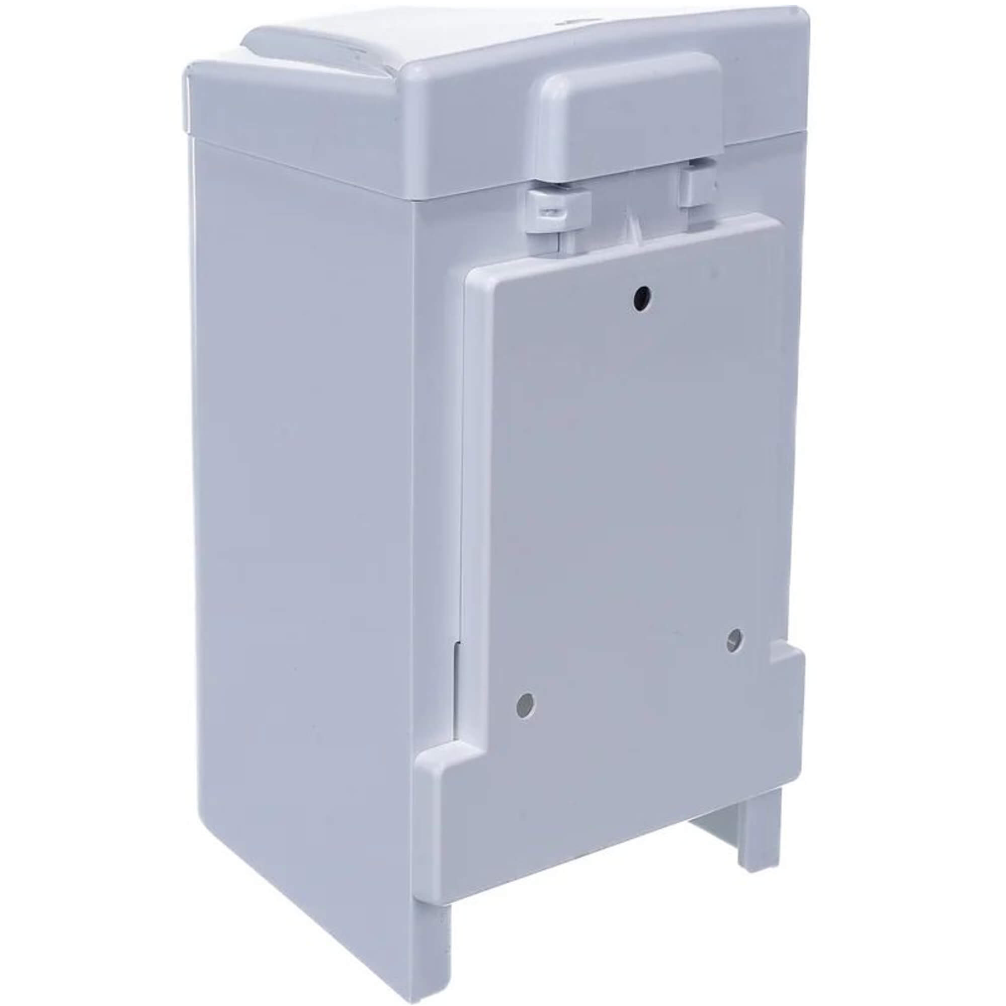 Dozownik zamykany na plastikowy kluczyk. Pojemnik wykonany z wzmacniany plastik ABS Mydło do dozownika uzupełniamy z dowolnego kanistra lub butelki. Montowany do ściany za pomocą kołków rozporowych (w zestawie)