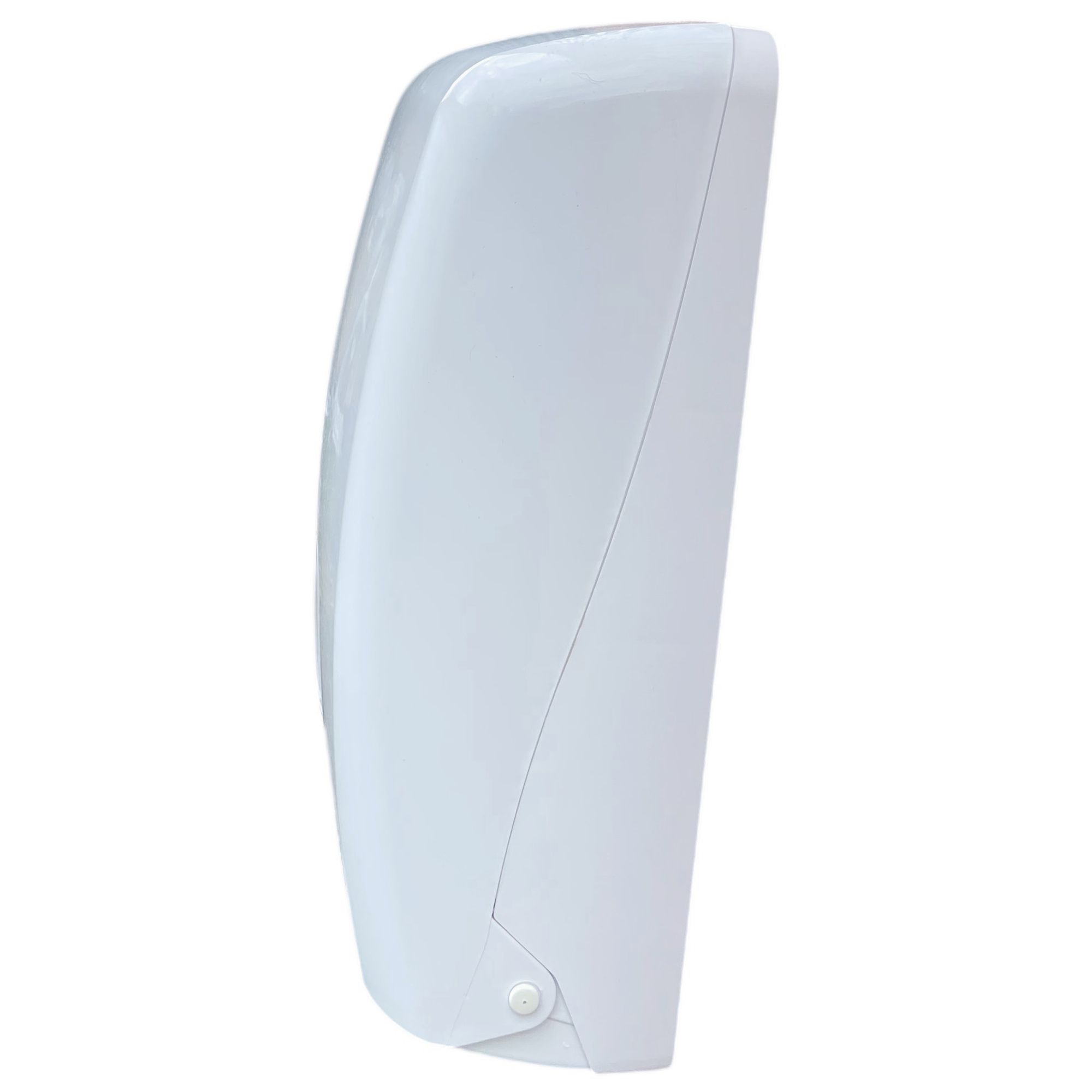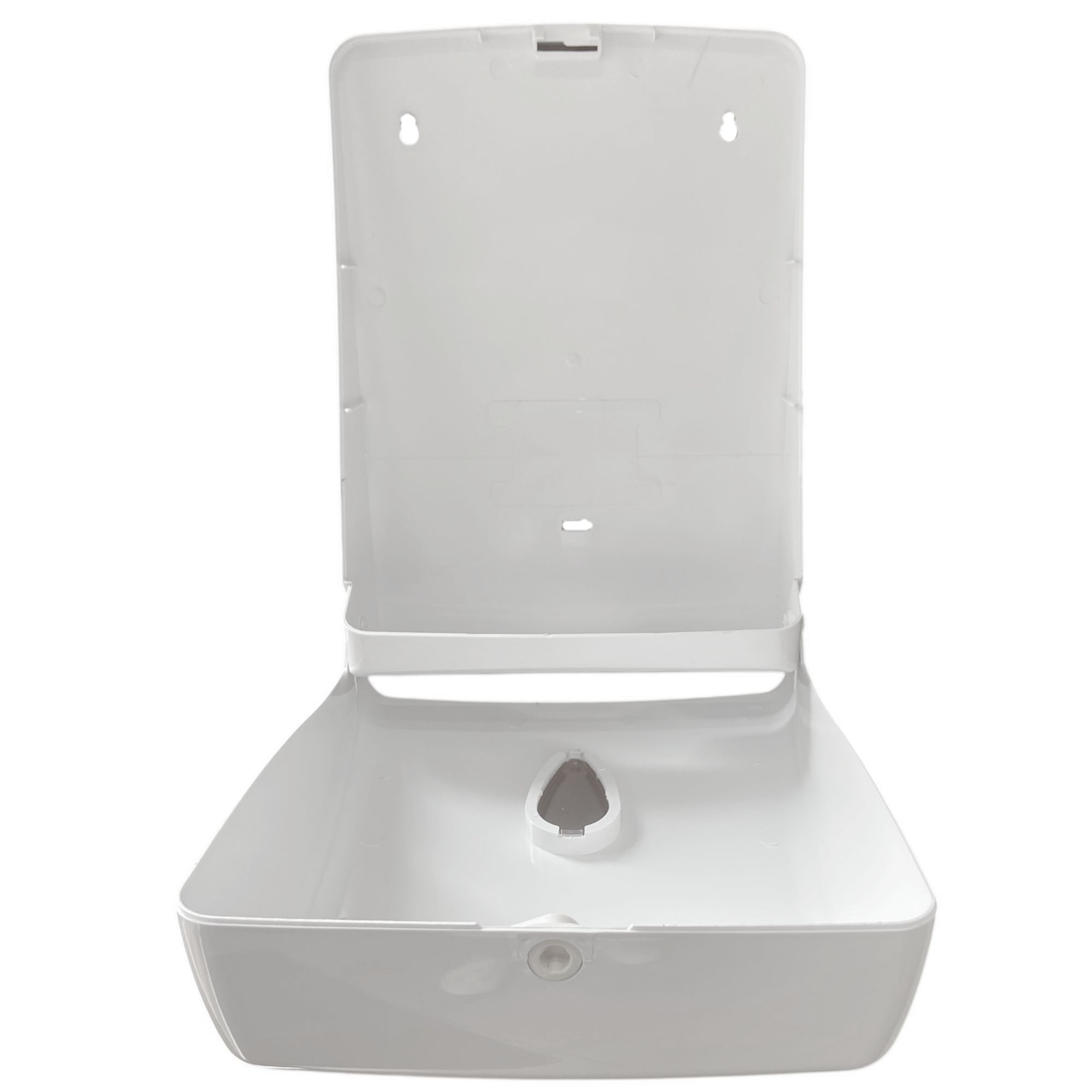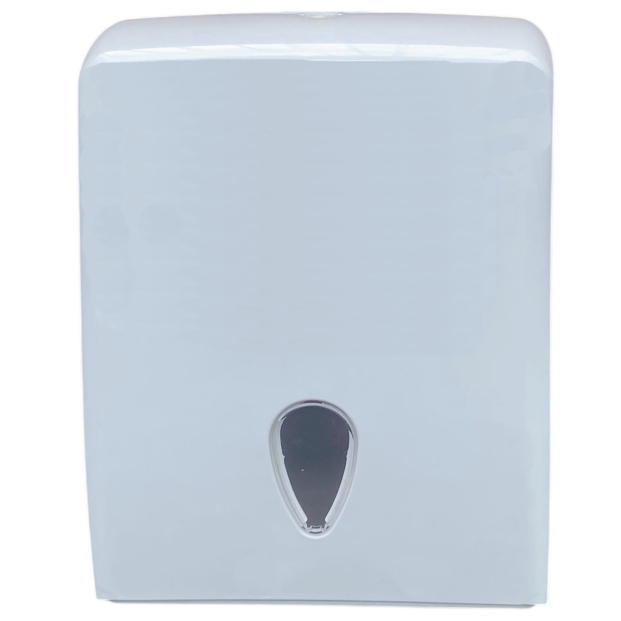 Nowoczesny wysokiej jakości biały dozownik do ręczników papierowych składanych. Produkty z tej serii produkowane są w Unii Europejskiej i z poszanowaniem środowiska oraz recyklingu. Produkty są bardzo wysokiej jakości, wykonane są z mocnego tworzywa.