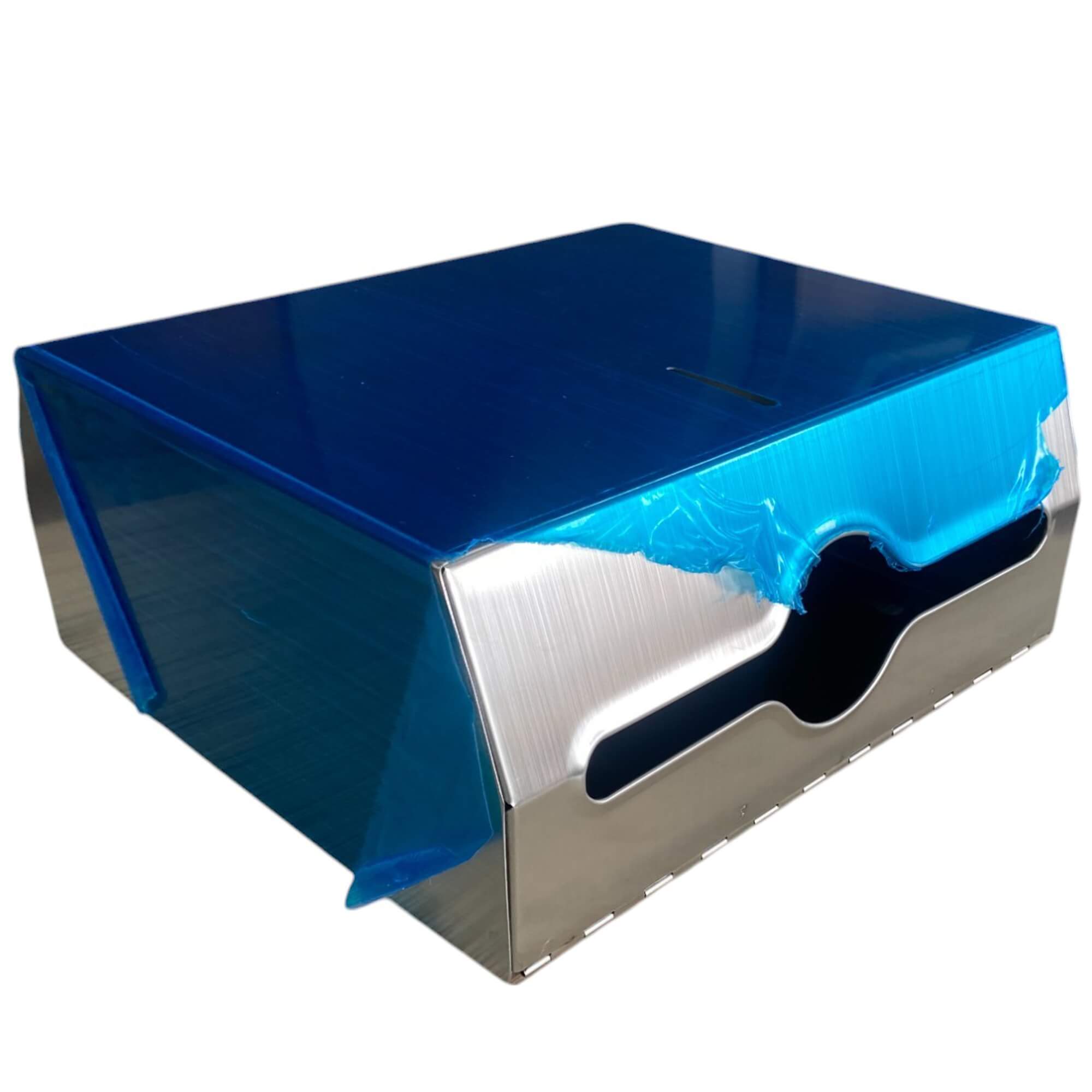 Nowoczesny stalowy w odcieni matowej pojemnik na ręczniki papierowe składane ZZ / V. Ręczne wyciągnięcie jednego ręcznika powoduje wysunięcie następnego. Pojemnik wykonany z stali nierdzewnej Posiada okienko do kontroli ilości ręczników w pojemniku. Posiada metalowy zamek na kluczyk.