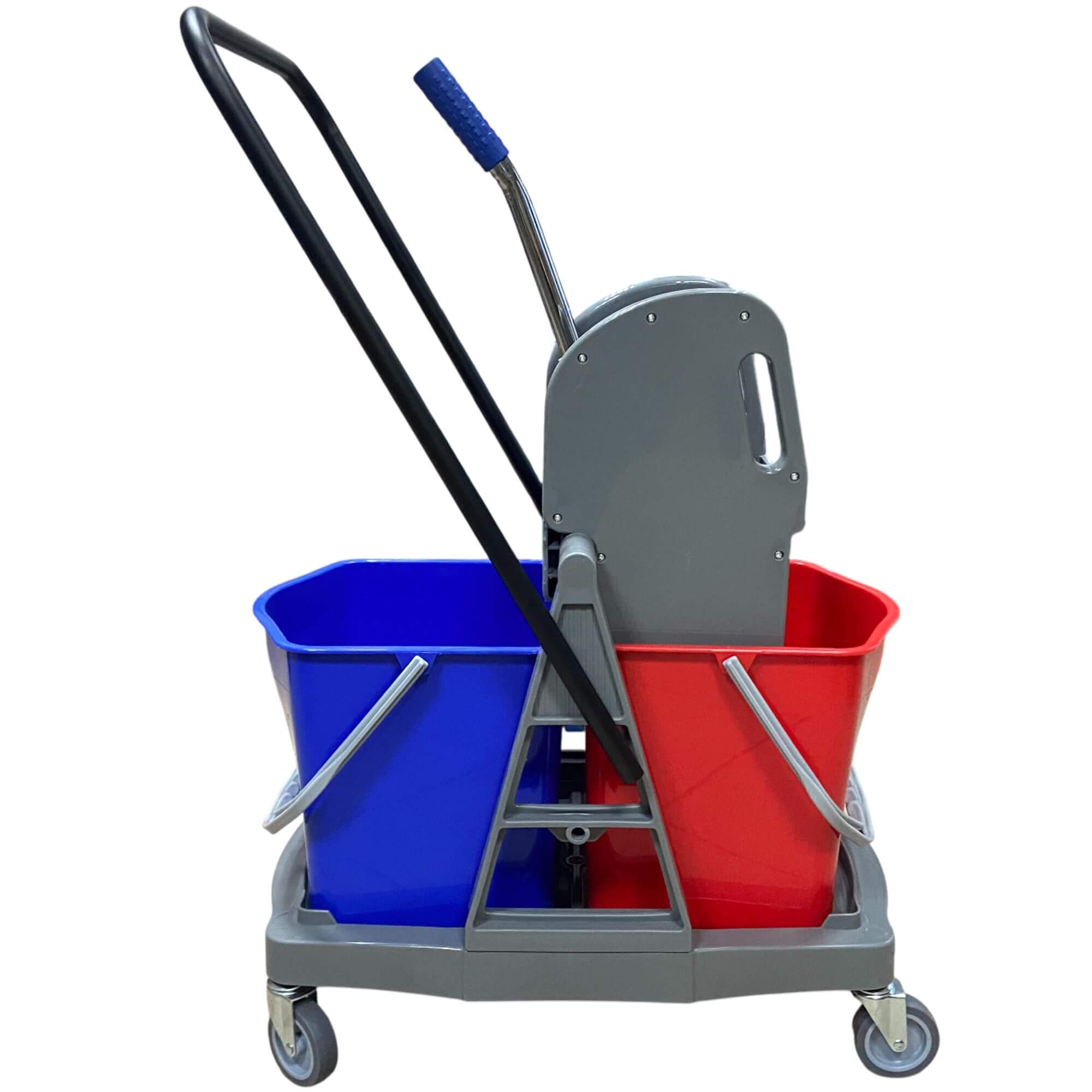 Dwuwiaderkowy wózek do sprzątania usprawnia prace porządkowe, czyniąc je bardziej efektywnymi. Wózek do sprzątania jest wyposażony w dwa wiadra o pojemności 17 litrów oraz prasę do wyciskania mopów. Wykonany z wytrzymałego tworzywa  zapewniaj komfortową pracę.