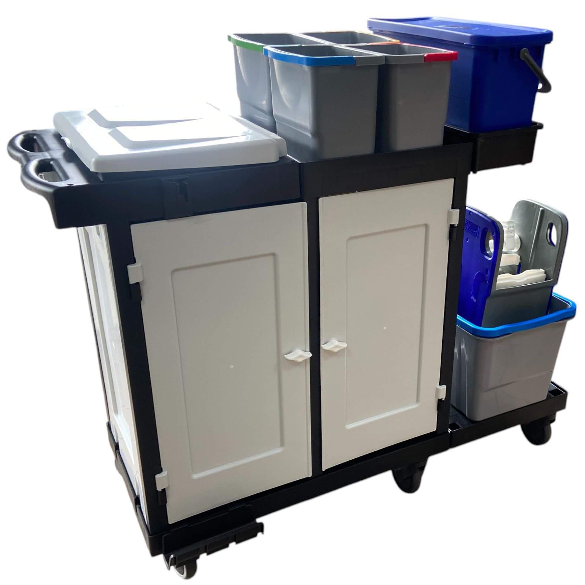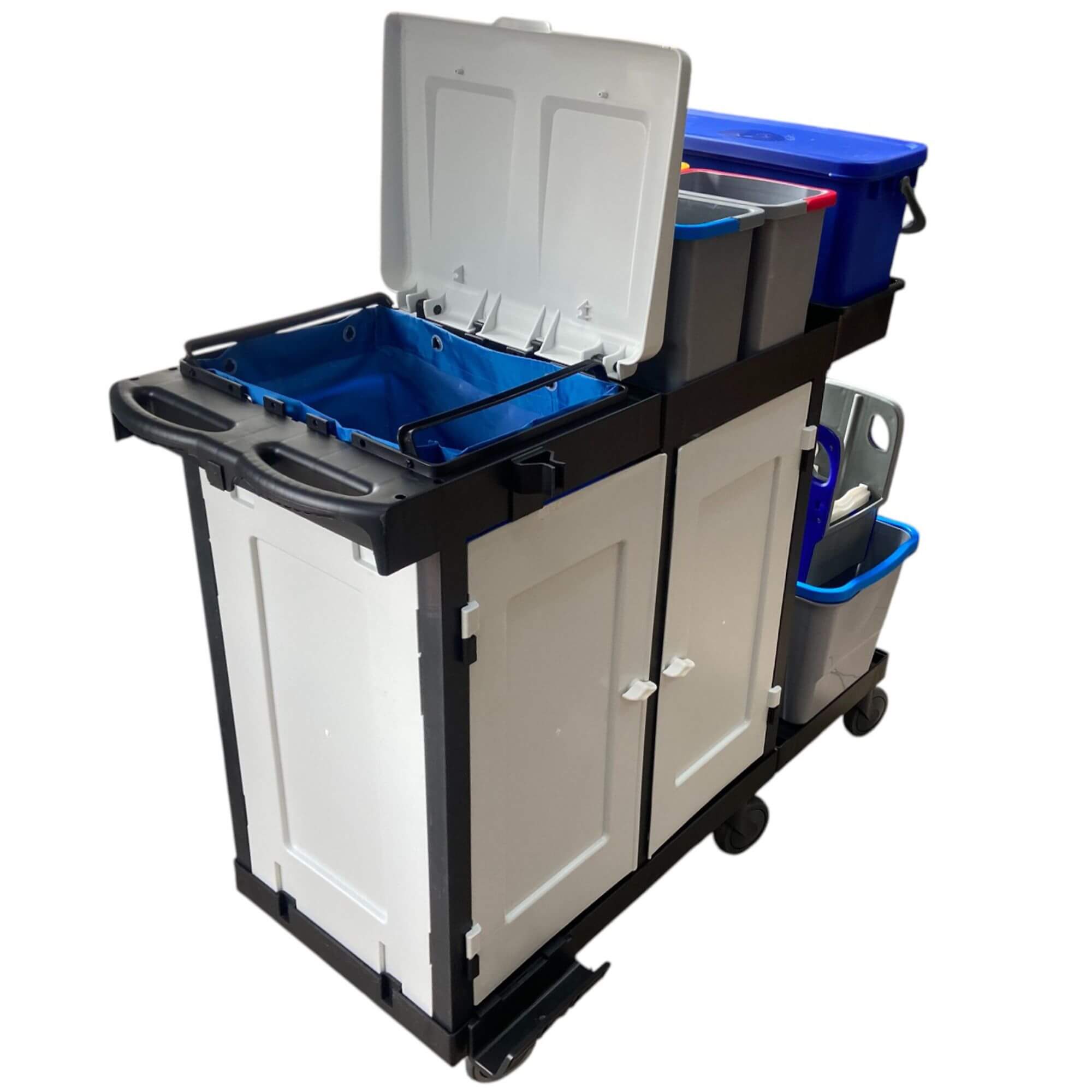 Wózek serwisowy HSC451 to kompletne, profesjonalne rozwiązanie stworzone z myślą o efektywnym utrzymaniu czystości w dużych obiektach. Dzięki przemyślanej konstrukcji i bogatemu wyposażeniu, model ten doskonale sprawdzi się w hotelach, biurowcach, szkołach, szpitalach oraz wszędzie tam, gdzie liczy się skuteczność i ergonomia pracy.