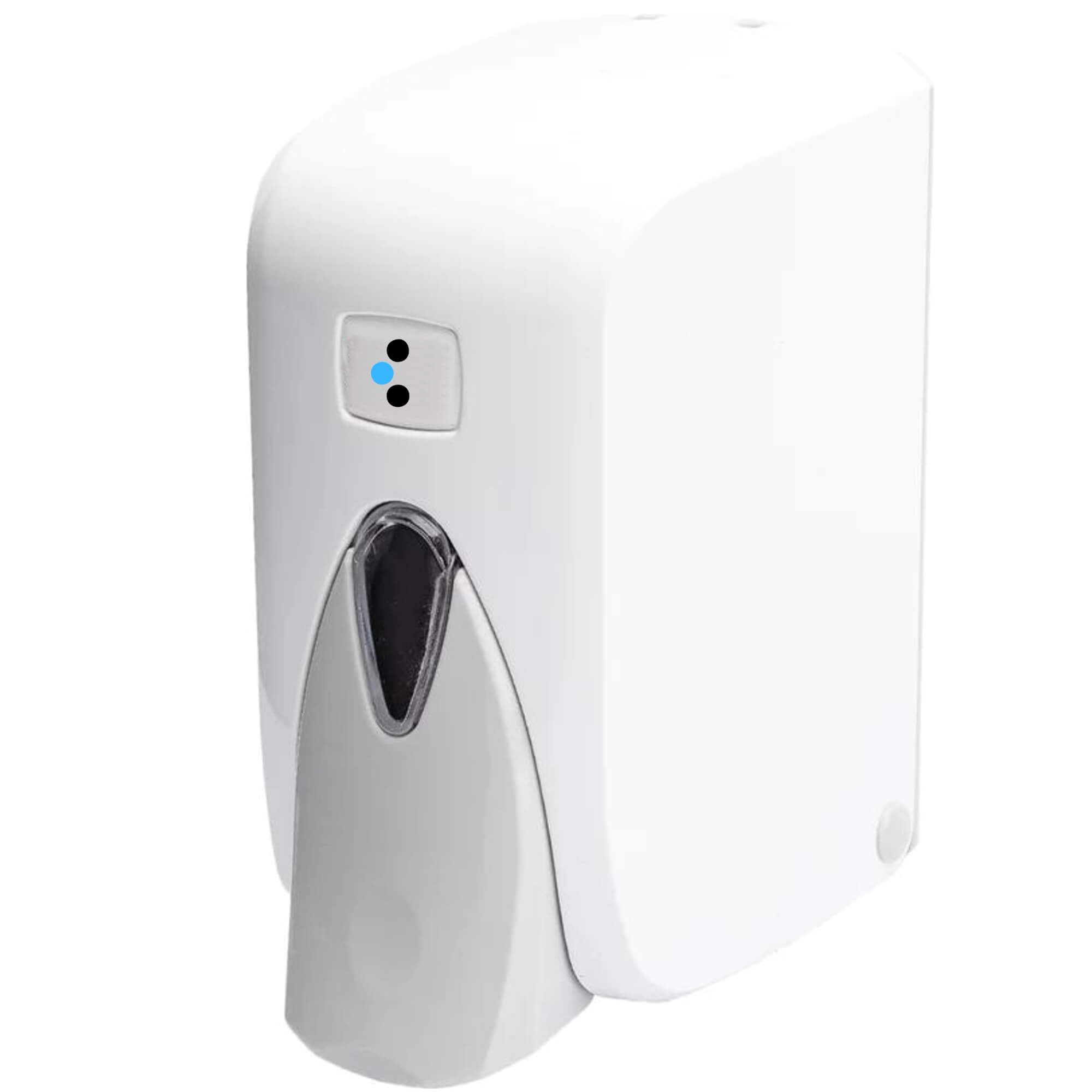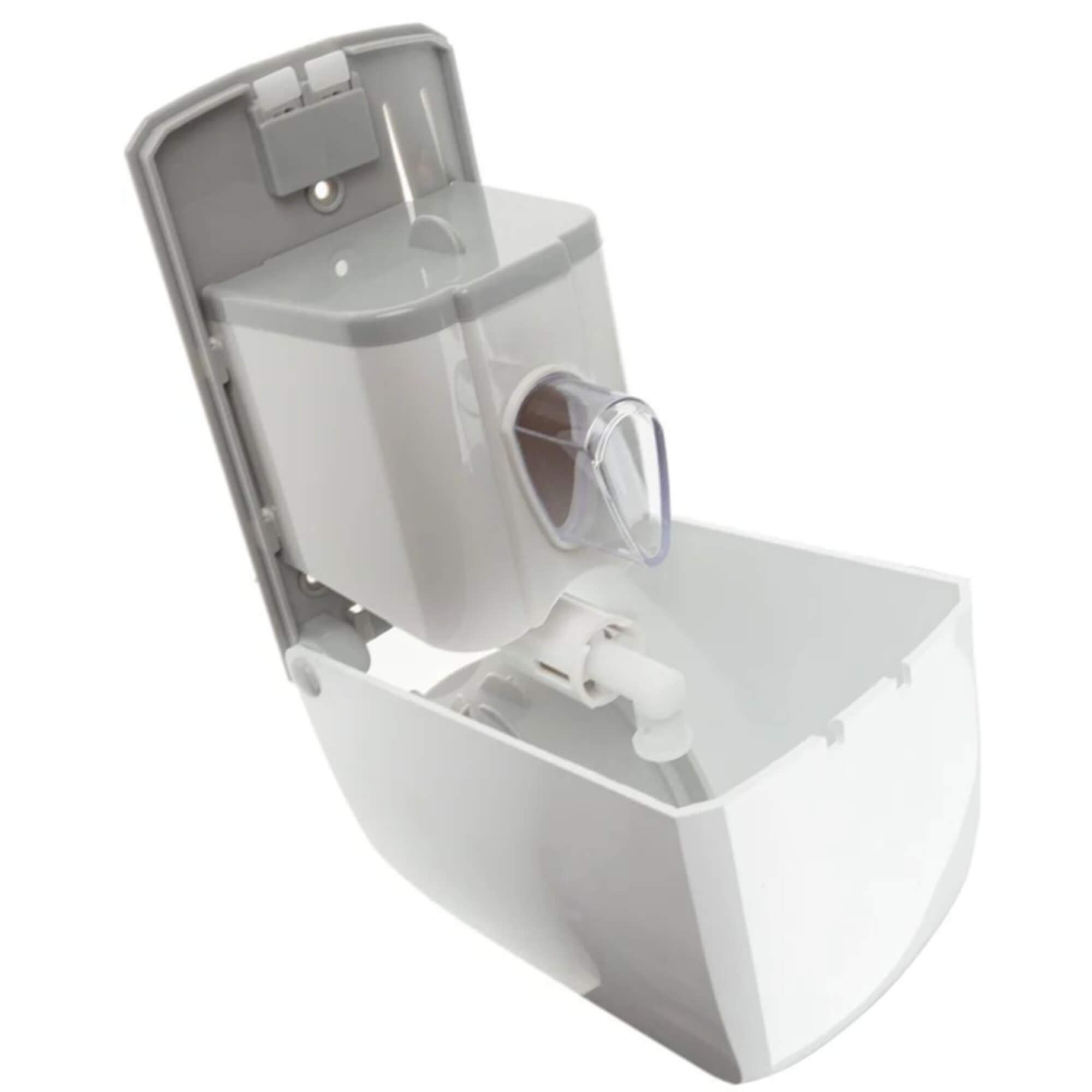 Nowoczesny w białym kolorze podajnik do mydła. Dozownik posiada wygodny wizjer do kontroli ilości mydła.