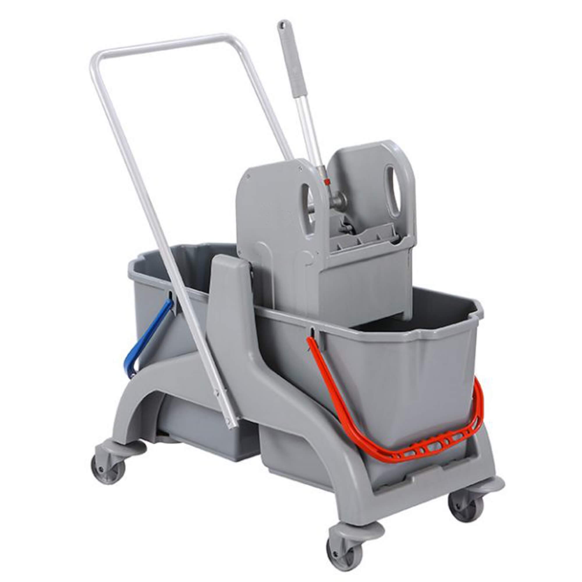 Wózek posiada wiadra które posiadają czerwone i niebieskie uchwyty, które umożliwiają oddzielenie roztworu czyszczącego od wody do płukania w celu uzyskania lepszych wyników czyszczenia i higieny, oszczędzając wodę.
