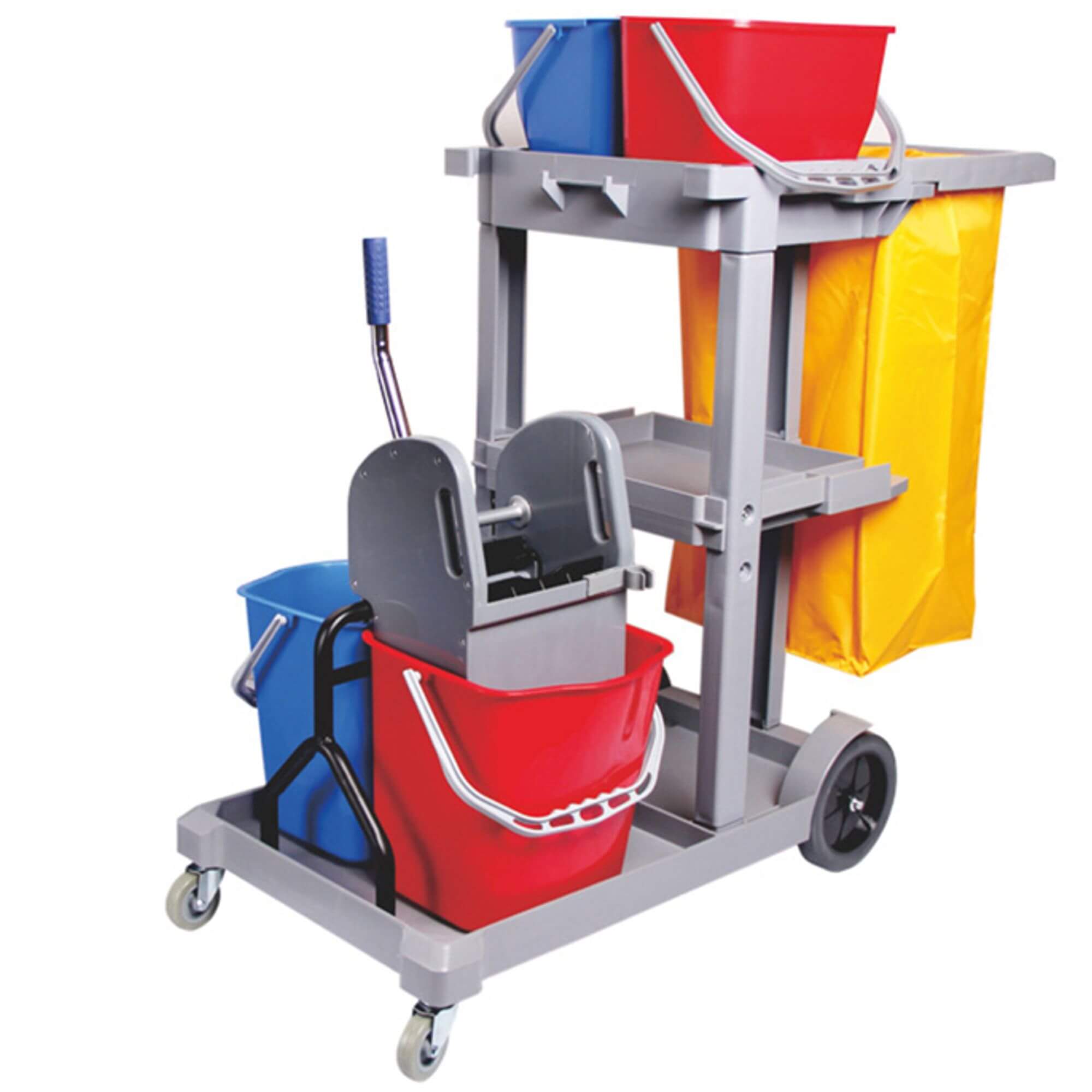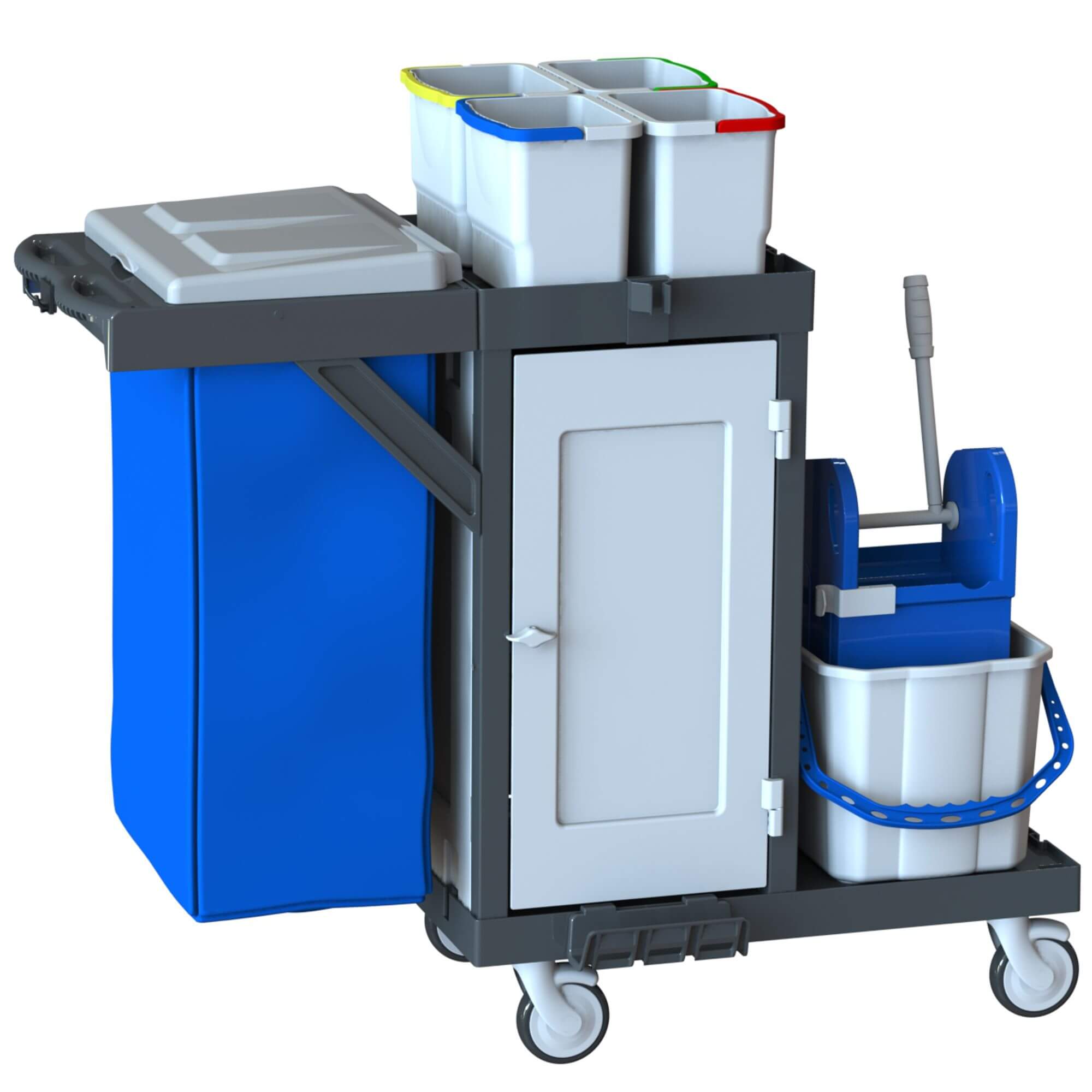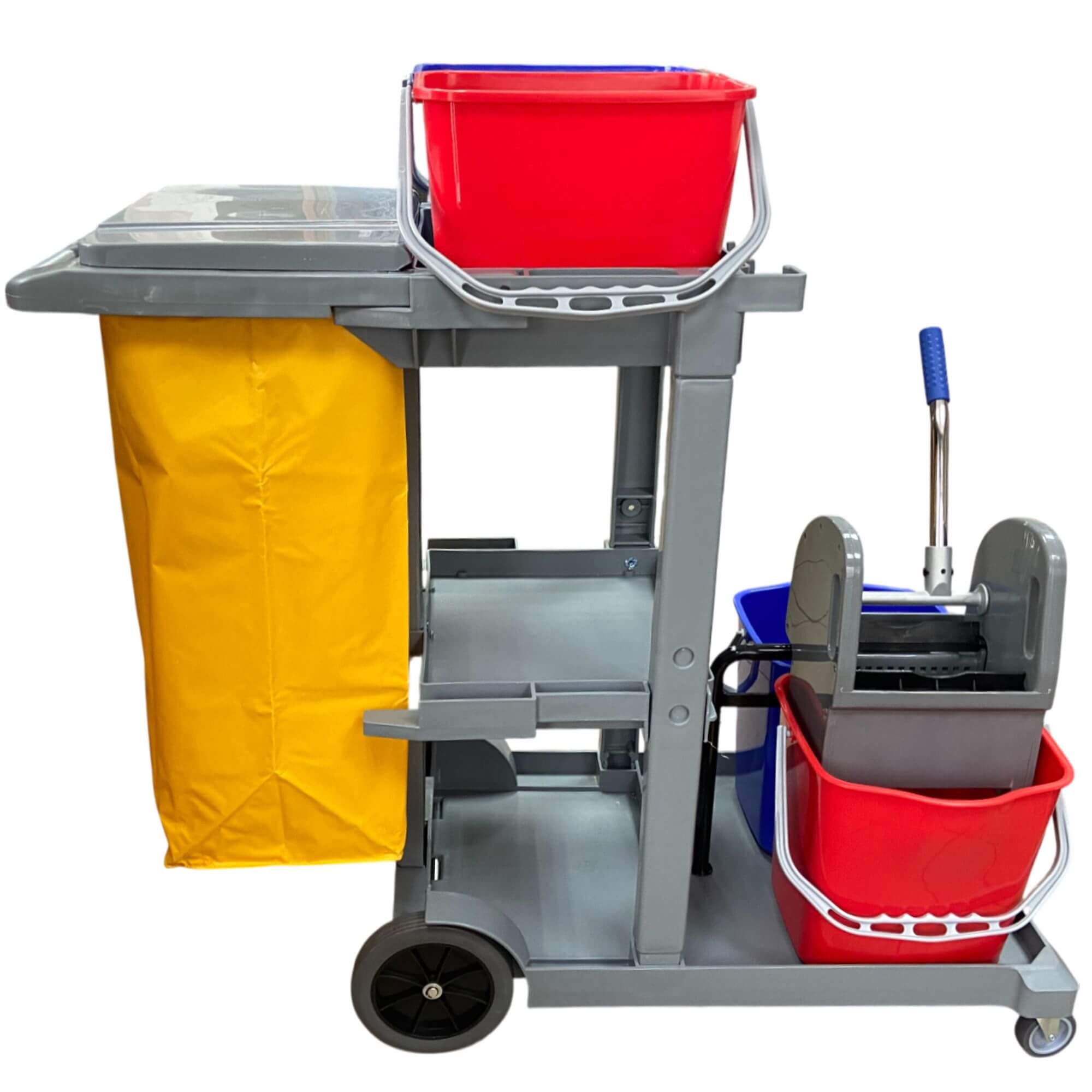 Wózek Serwisowy 2x18l z Wyciskarką Szczękową 2x6l Wiaderka na Akcesoria oraz Koszem 120l HS242
